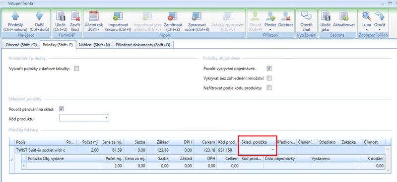 V případě, že se nepodaří automaticky napárovat všechny položky faktury na nevykryté položky objednávek podle kódu produktu, automatický import je zastaven. Uživatel si může nastavit manuální vykrývání objednávek v detailu faktury, ve sloupci Sklad.položka