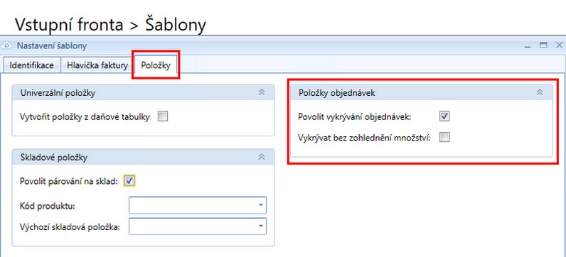 Povolit vykrývání objednávek – je nutné zapnout, aby daná faktura nebo skupina faktur na kterou se aplikuje šablona mohla vykrývat objednávky.