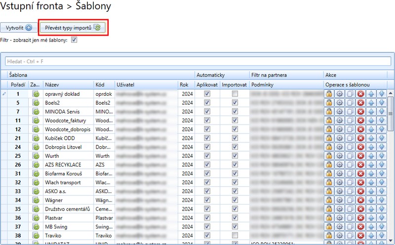 Upozornění: po proběhnutí synchronizací a načtení nových číselných řad se ve všech importních šablonách vymaže TYP (číselná řada)