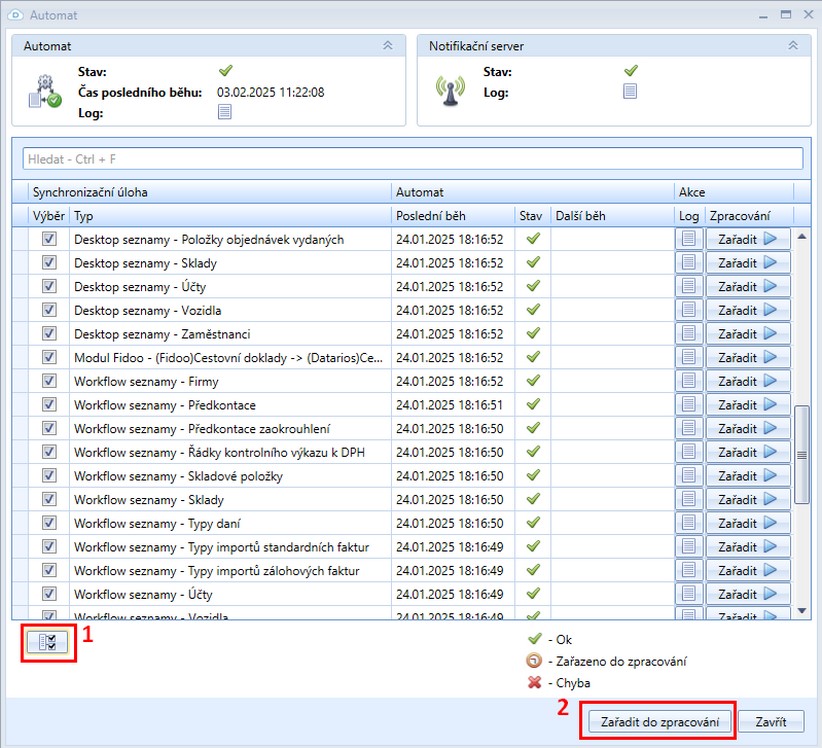 • Spustit všechny synchronizační úlohy a počkat na jejich doběhnutí