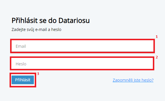 Přihlašovacími údaji do Datariosu je email a heslo, kterými se přihlásíte ZDE.