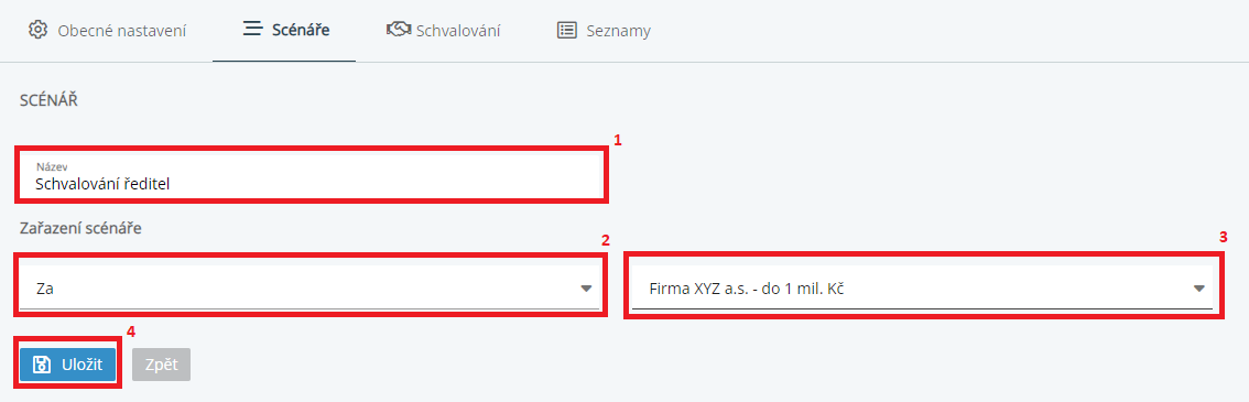 Takto vytvořenou definici scénáře uložíte tlačítkem Uložit (4).