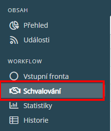 Doklady, kterým byl ve Vstupní frontě přiřazen scénář s krokem schvalování, jsou schvalovateli zobrazeny ve volbě Schvalování